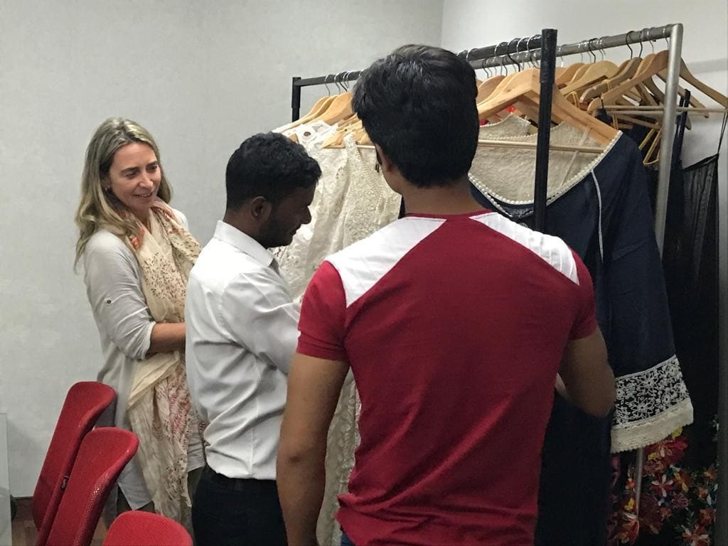 El color y esas combinaciones imposibles, las guardas, los apliques con espejos y campanitas, las prendas de la India tienen sonido¡ A partir de aquella primera vez, regresé a la India todos los años y mi integración a esa dinámica social tan vital me enseñó mucho acerca de la entropía que anuncia lo que finalmente nunca se da: en ese mundo el caos tiene un orden y todo tiene una explicación. Luego de recorrer más de 20 talleres de confección, logré armar una red más pequeña que desde entonces me permite trabajar con los diseños ancestrales de la vestimenta femenina hindú y lo más importante, intervenir en ellos para poder adaptarlos para su uso en el Río de la Plata. Mis ideas acerca del corte y la confección cambiaron dramáticamente. Sin darme cuenta los sastres indios me llevaron hacia los orígenes, muchos de ellos tejen las telas con las que trabajan, la mayoría las tiñe manualmente y todos trabajan con una alegría increíble.